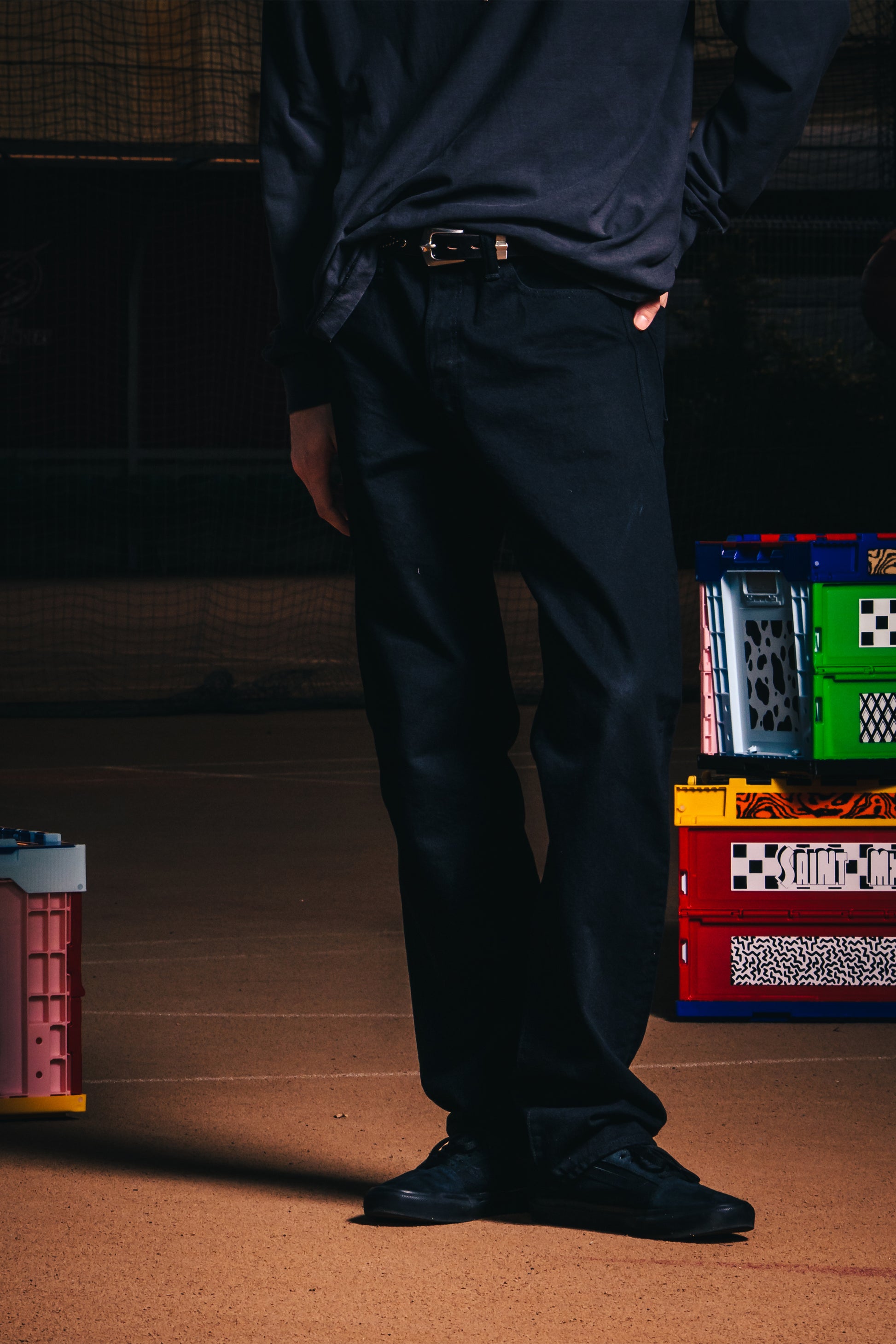 BLACK DENIM PANTS/STRAIGHT