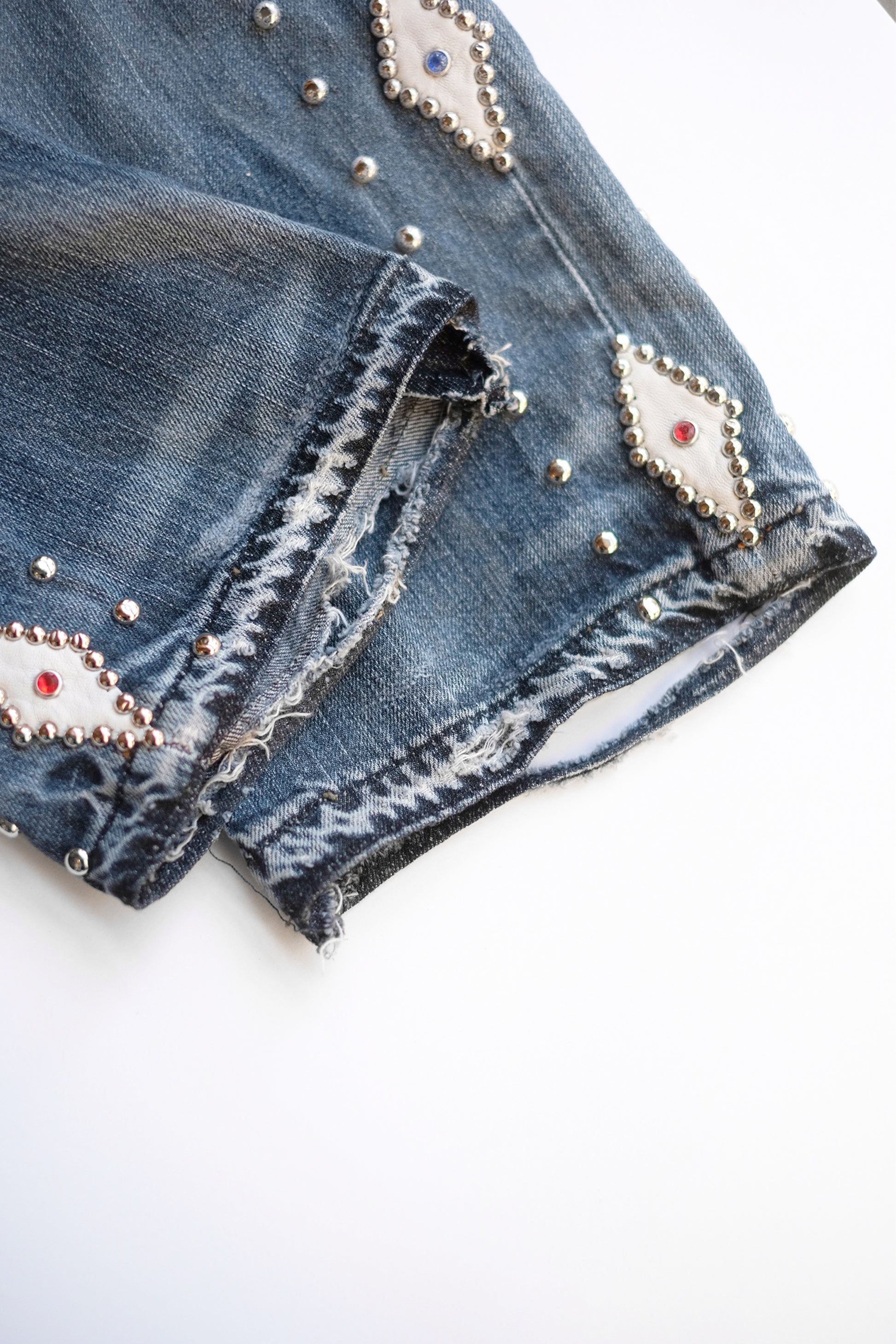 LEATHER STUDS DENIM PANTS