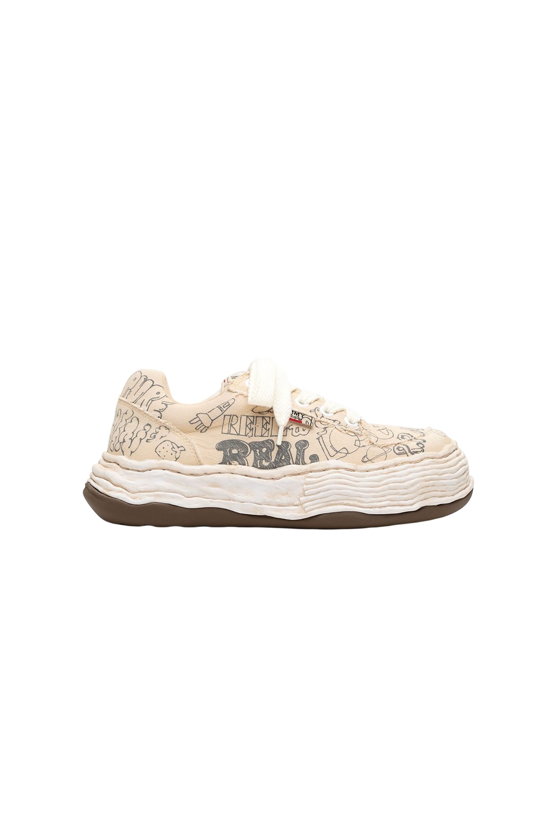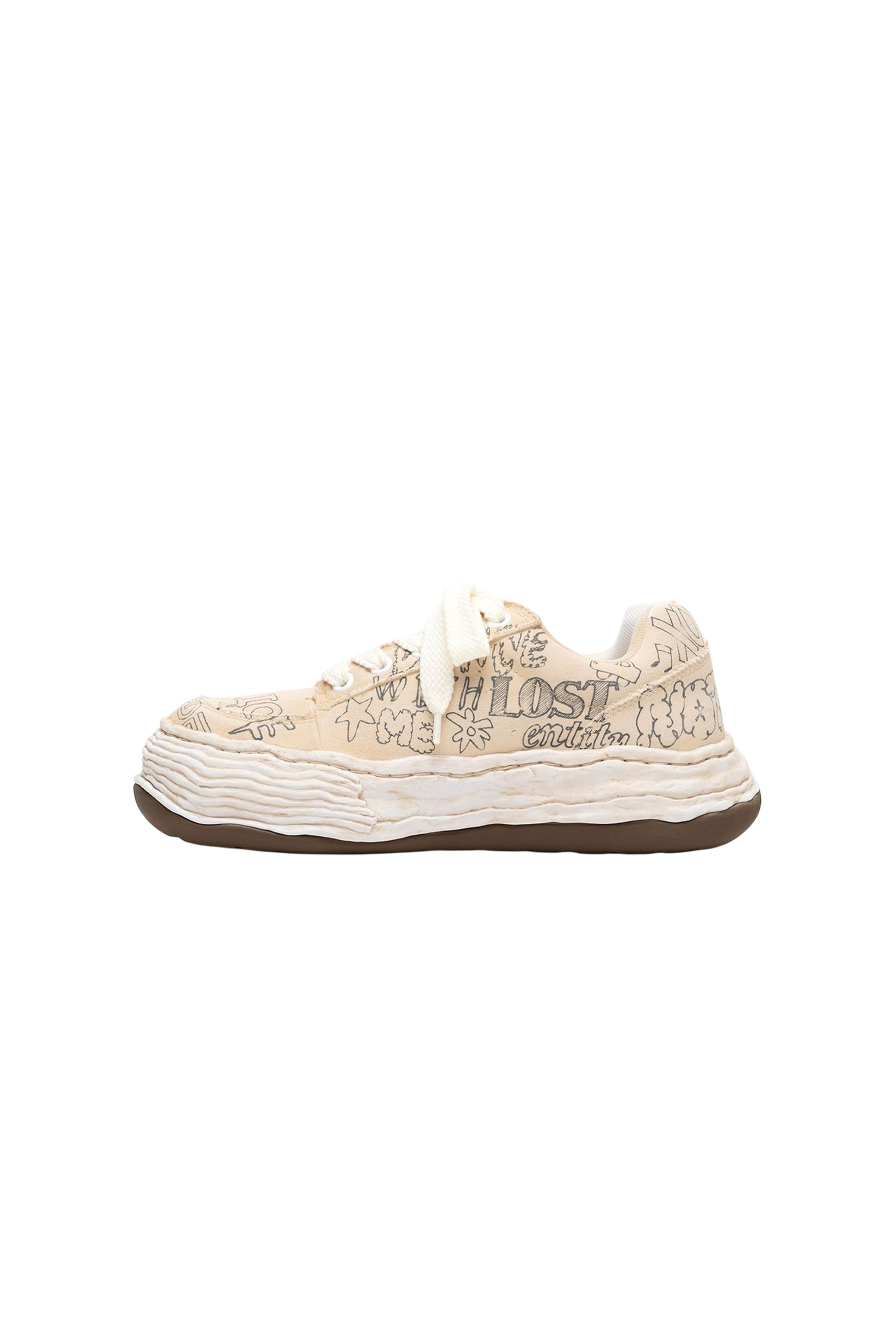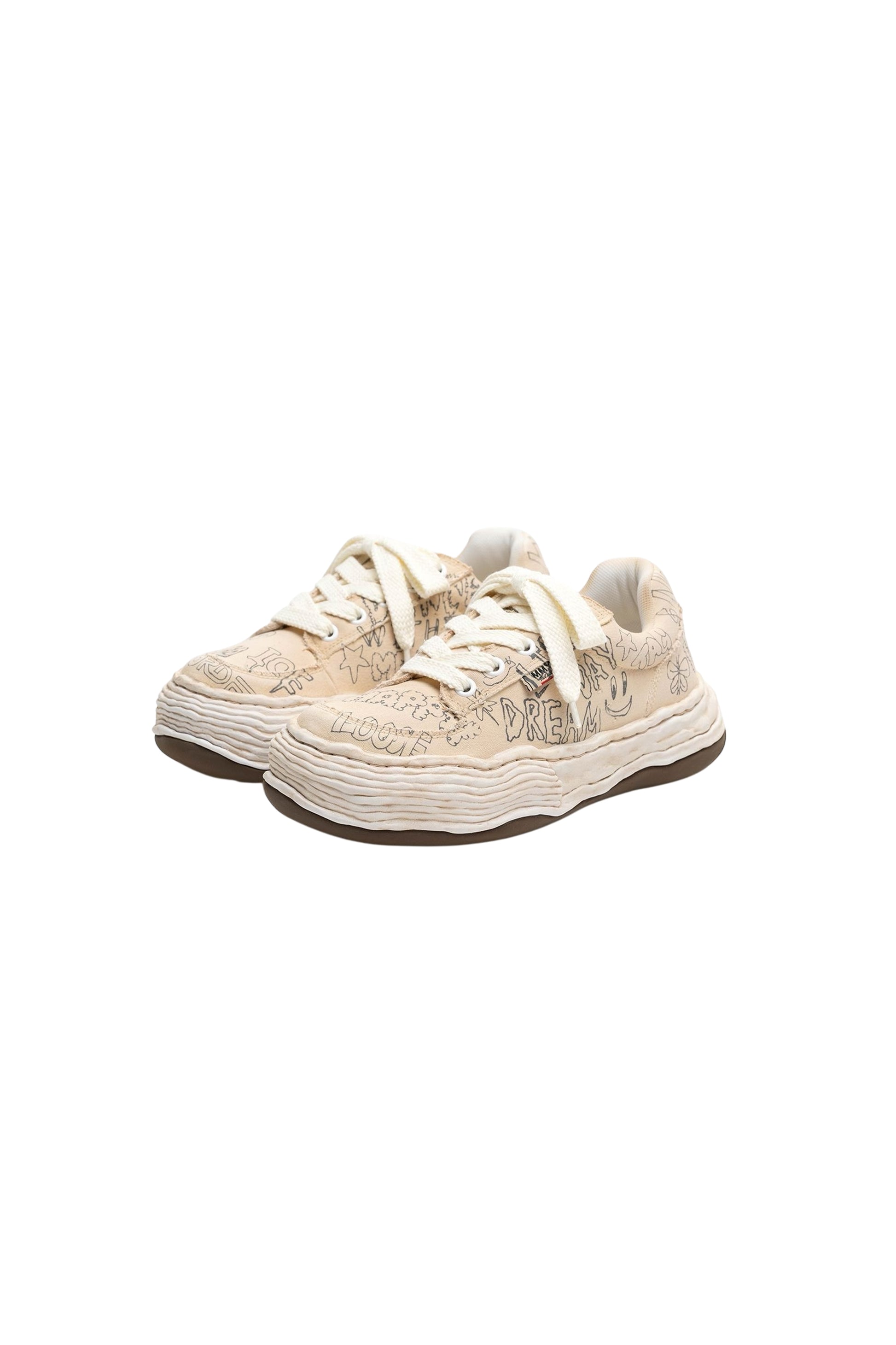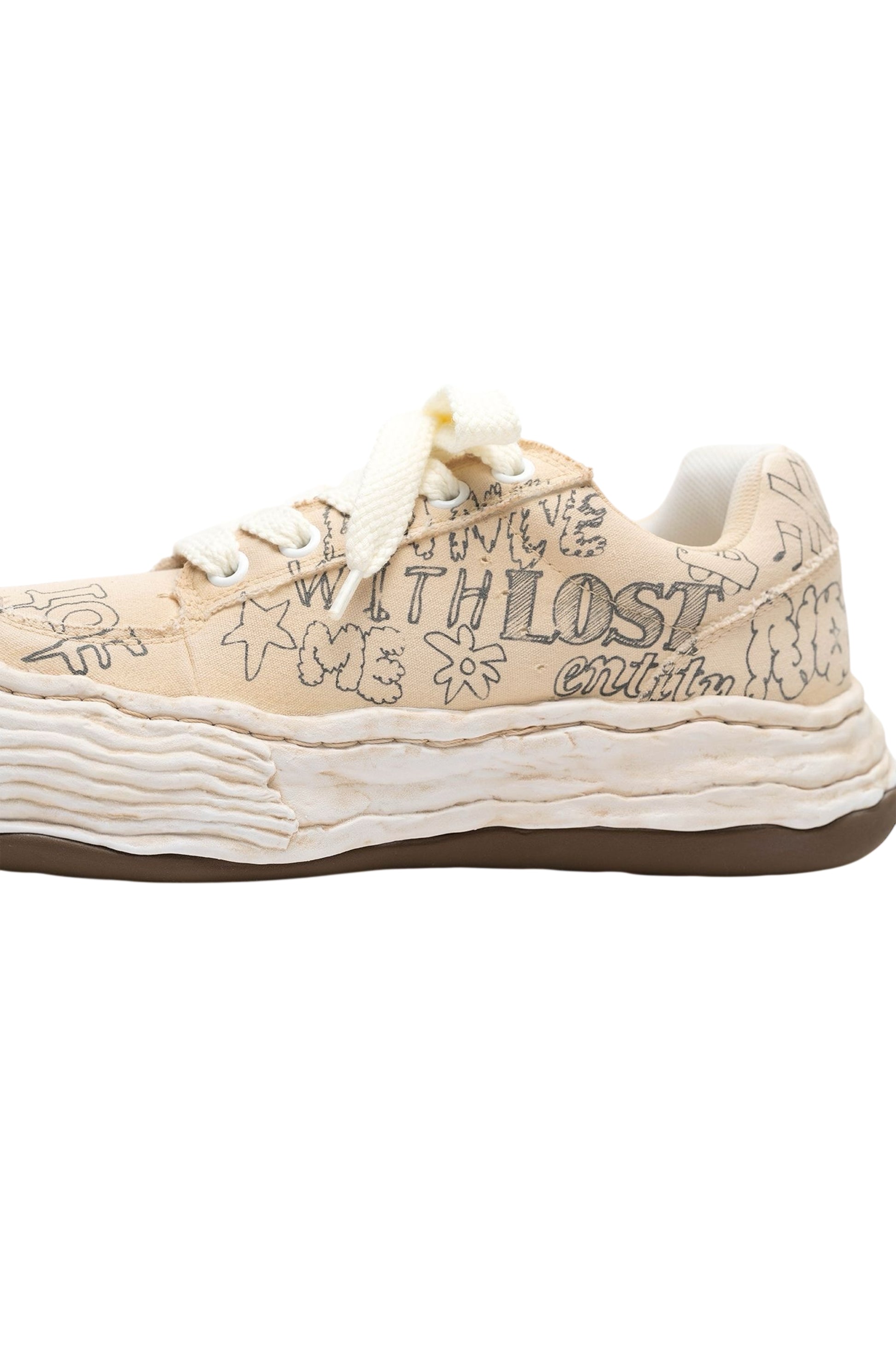 •足元を彩る大胆なグラフィティプリントが特徴。