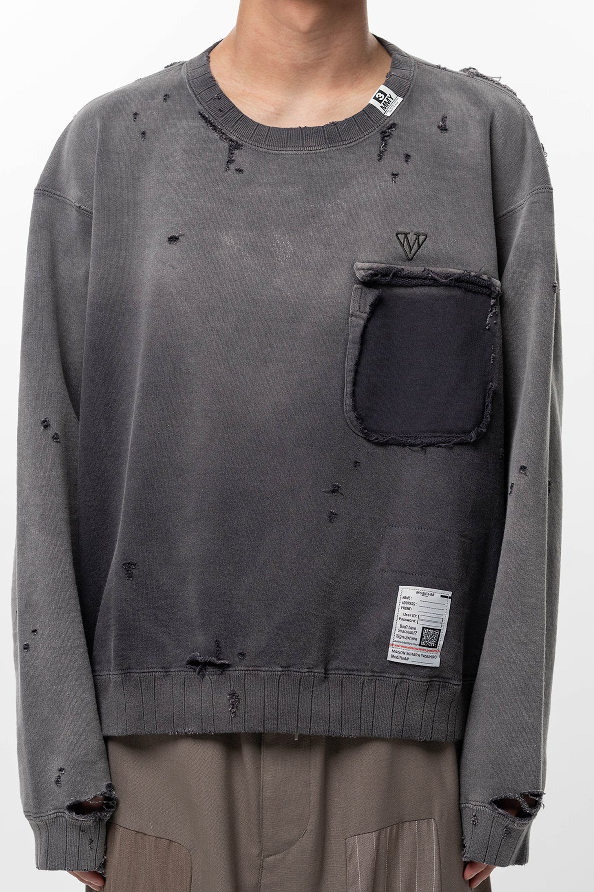 •胸ポケットが破れ落ちたデザイン。