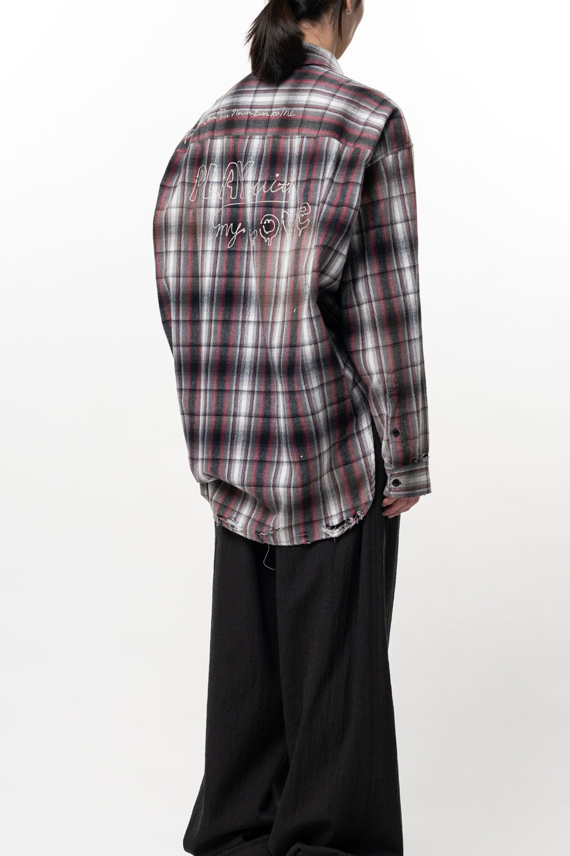 •ヴィンテージ加工を施したチェックシャツ。